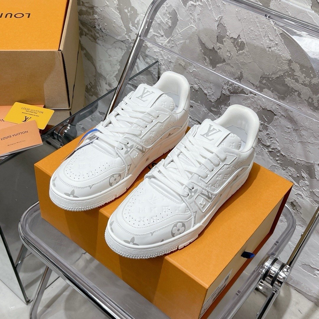 The Louis Vuitton x Nike Air Force 1 Low “White/Red” is a rare luxury-streetwear fusion created under Virgil Abloh’s direction. Featuring a classic two-tone white and red design inspired by the original 1985 Nike Dunks, the sneaker is crafted with premium white leather embossed with LV’s monogram and overlaid with red textile bearing the same iconic pattern. Finishing touches include a green hangtag, signature “AIR” text on the midsole, and co-branding elements throughout.